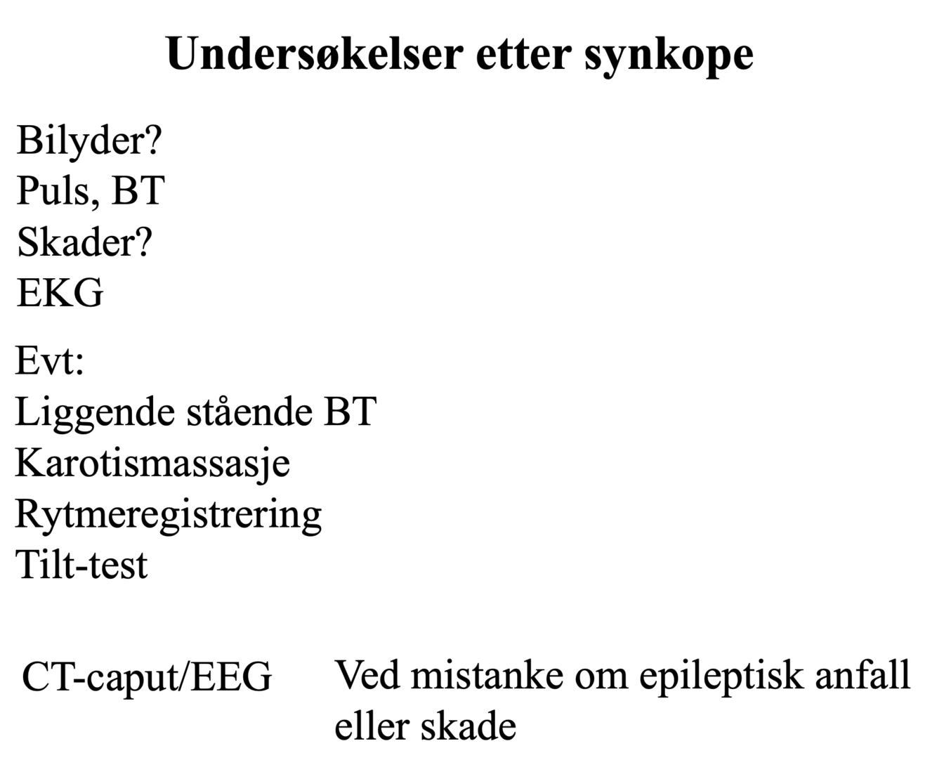 Hva slags us. er aktuelle hos en pas. som har synkopert?