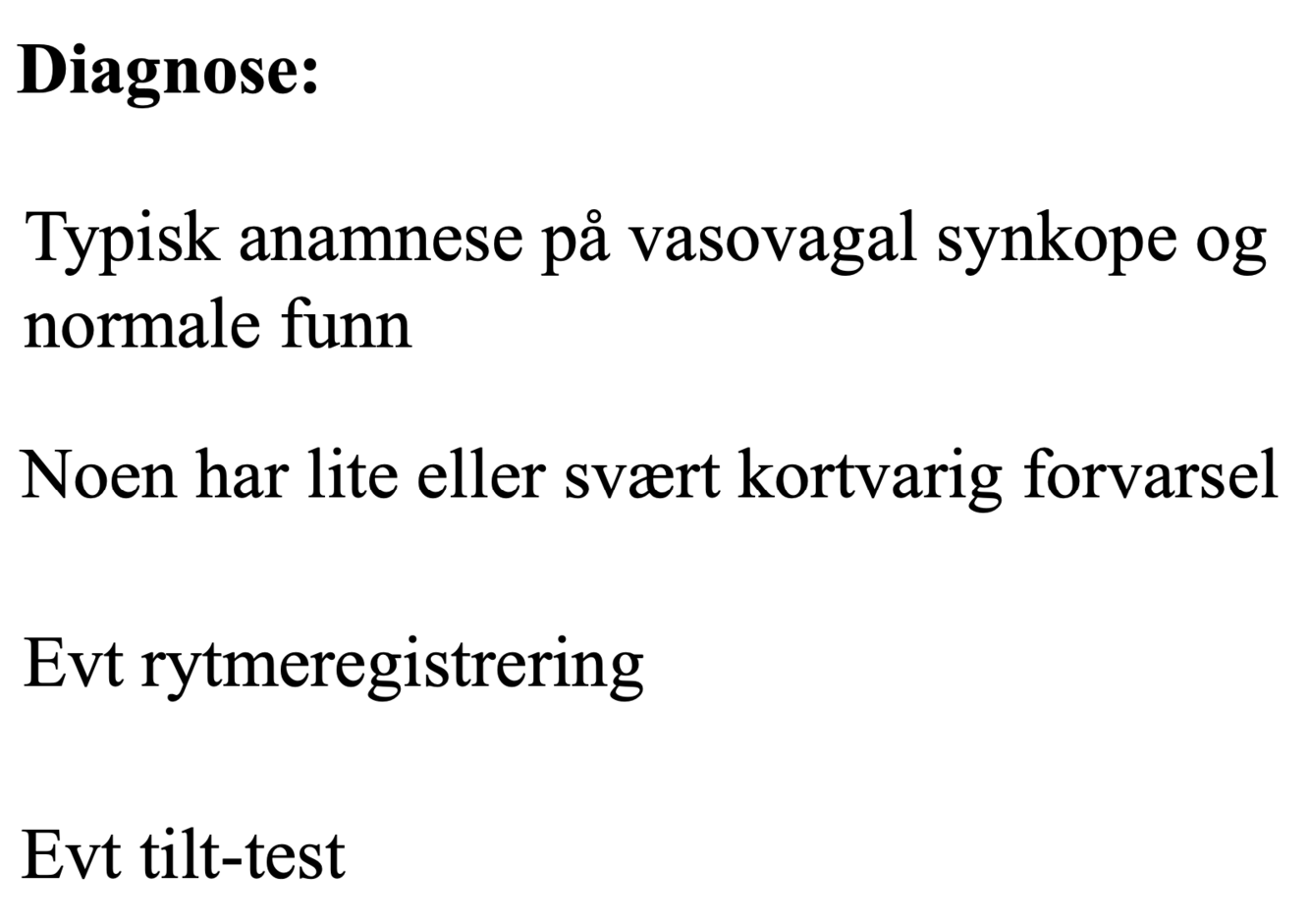 Hvilke anamnetiske funn gjør man ved en vasovagal synkope?