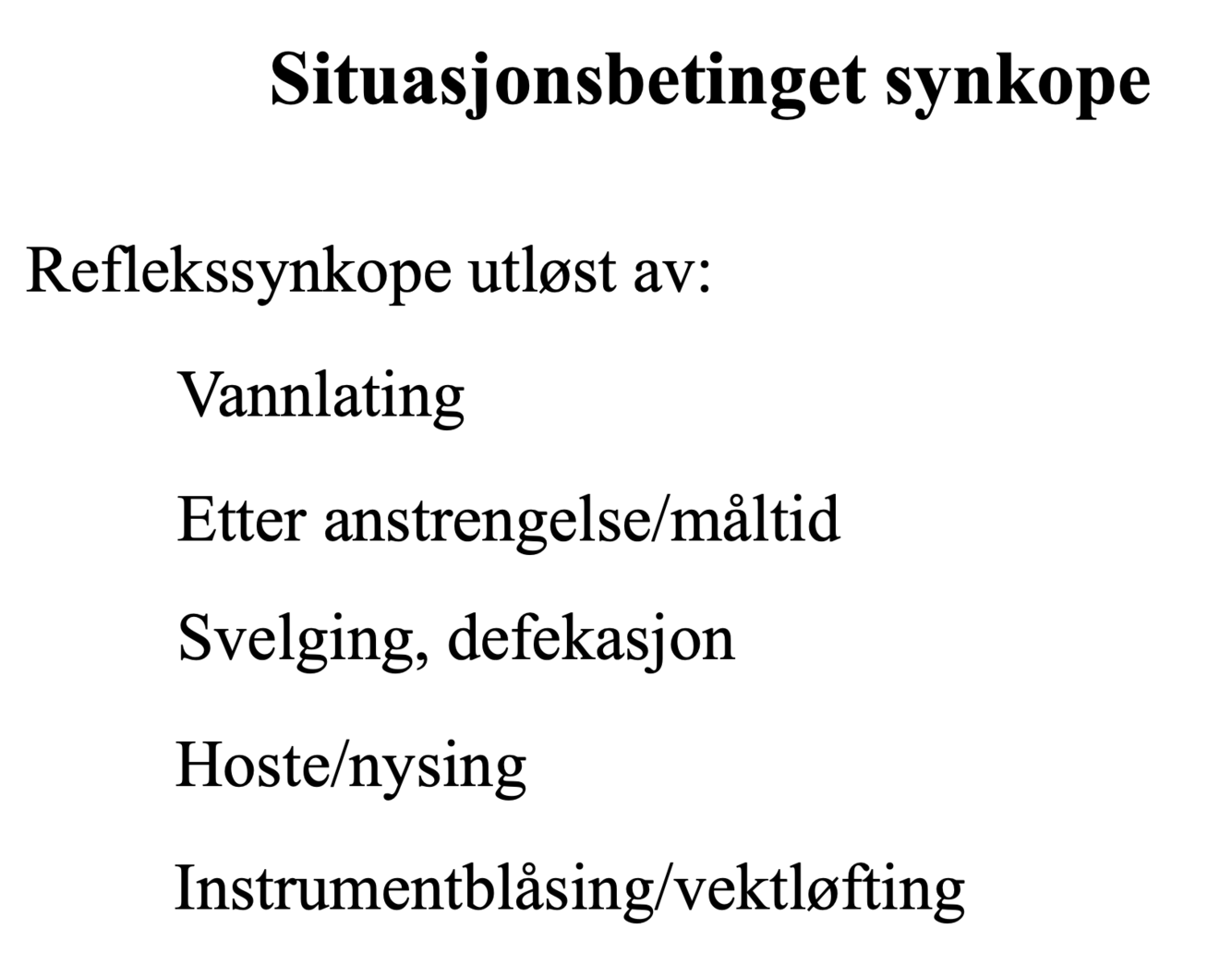 Hvilke situasjoner kan en situasjonsbetinget synkope utløses av?