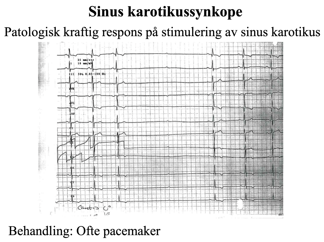 Hva er årsaken til sinus karotikussynkope, og hvilken behandling gir man?