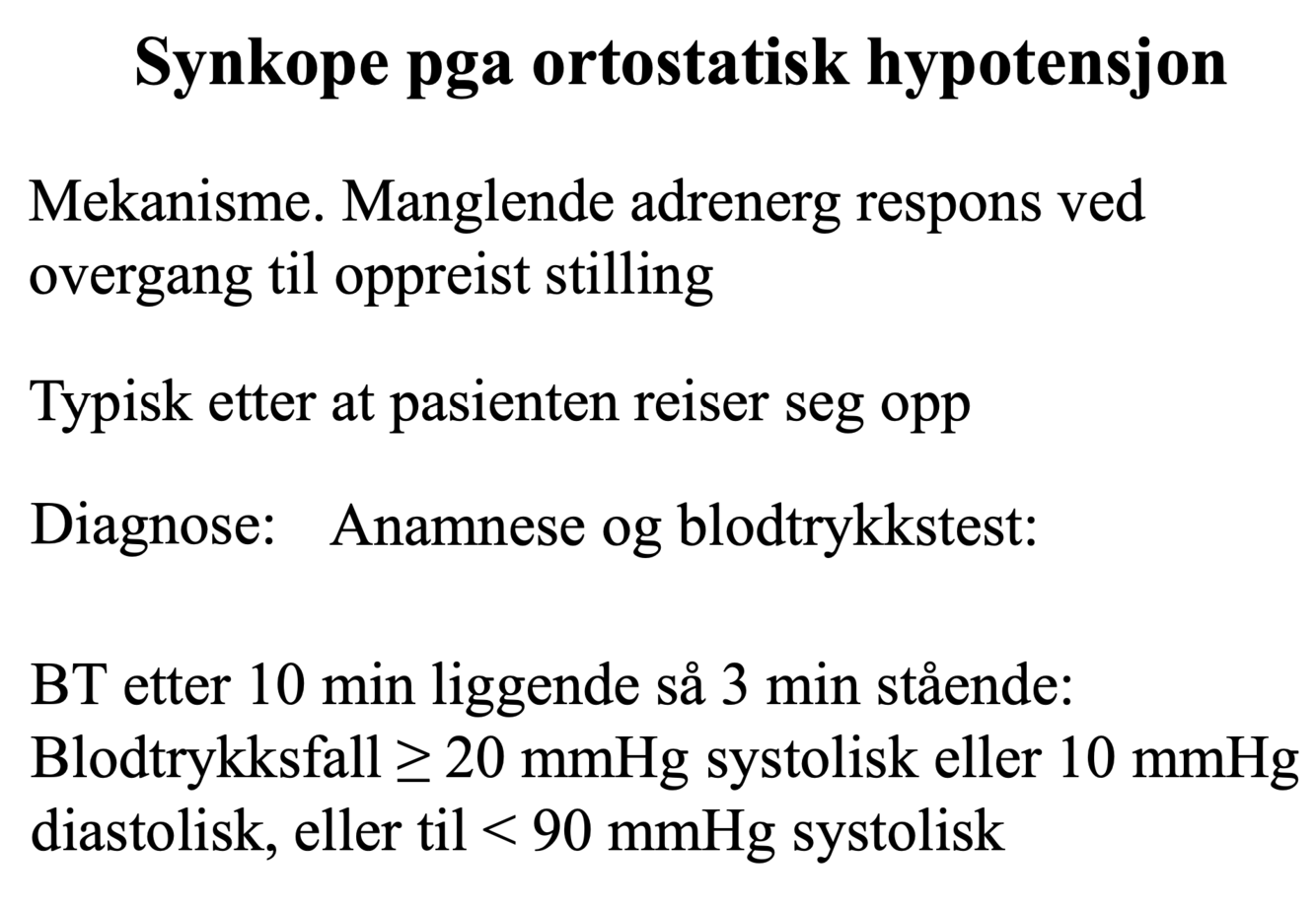 Hva er mekanismen og us. ved synkope pga. ortotostatisk hypotensjon?