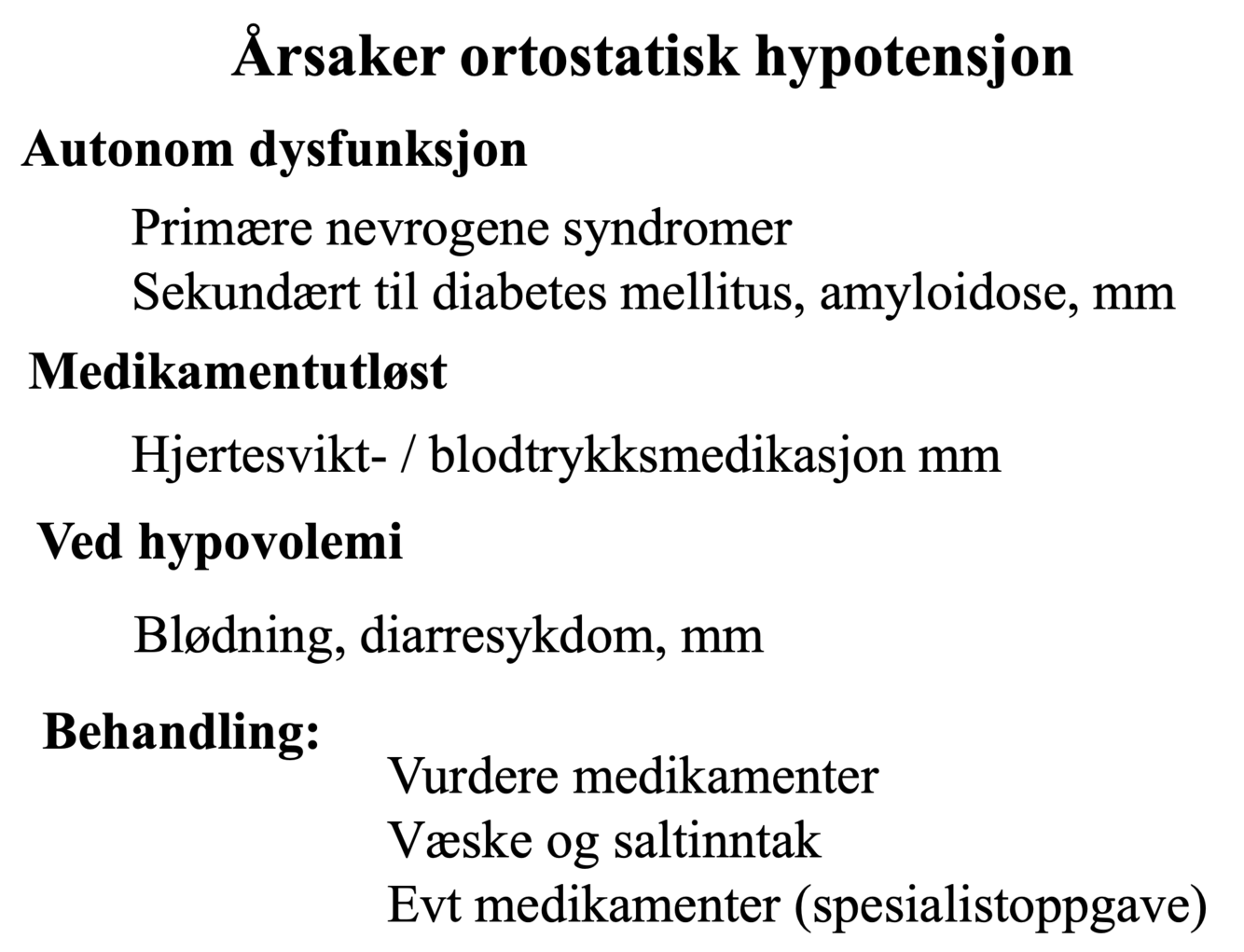 Hvilke årsaker finner man til ortostatisk hypotensjon?