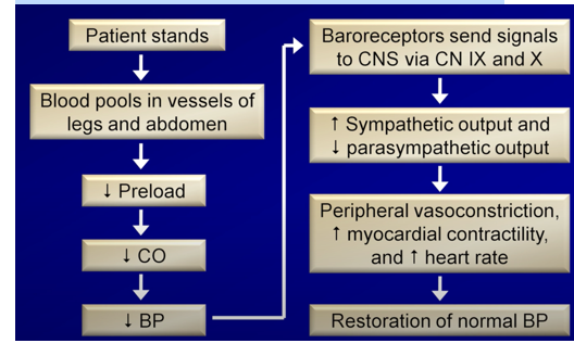 Ortostatisk synkope kan vissas vid fel var som i följande flödesschema è vilket leder till minskat blod till hjärnan för en kort tid.