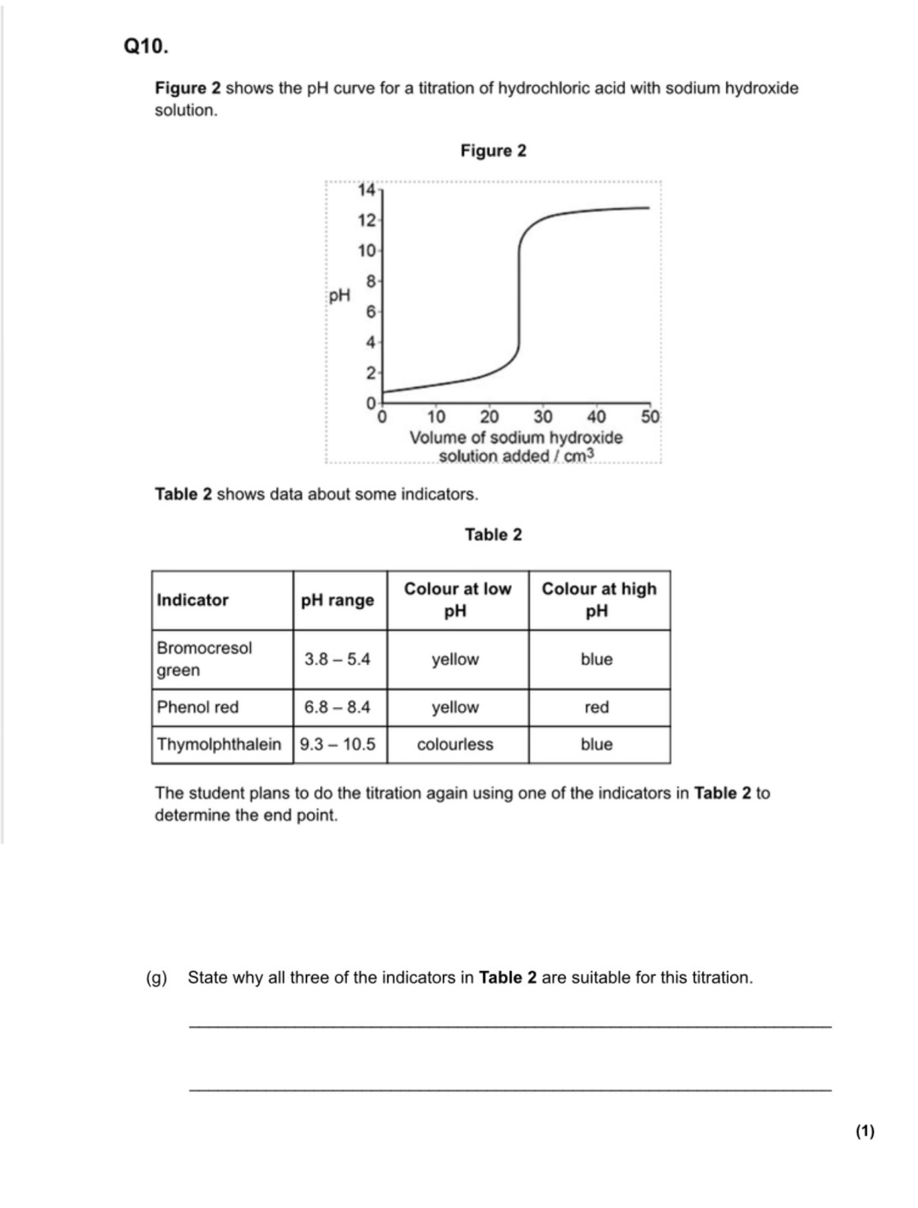 • Methyl orange and universal indicator are not suitable indicators for the titration of solutions of propanoic acid with sodium hydroxide.