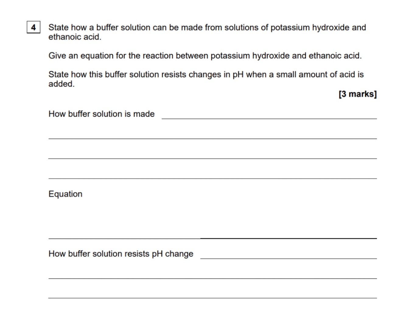 • How buffer solution is made: Add excess ethanoic acid to KOH