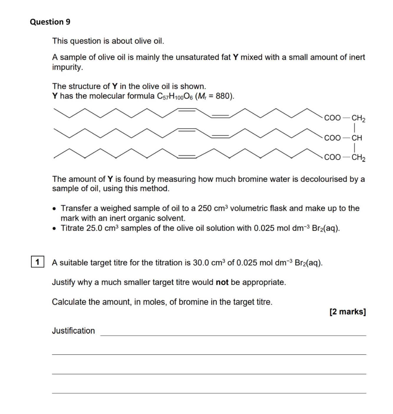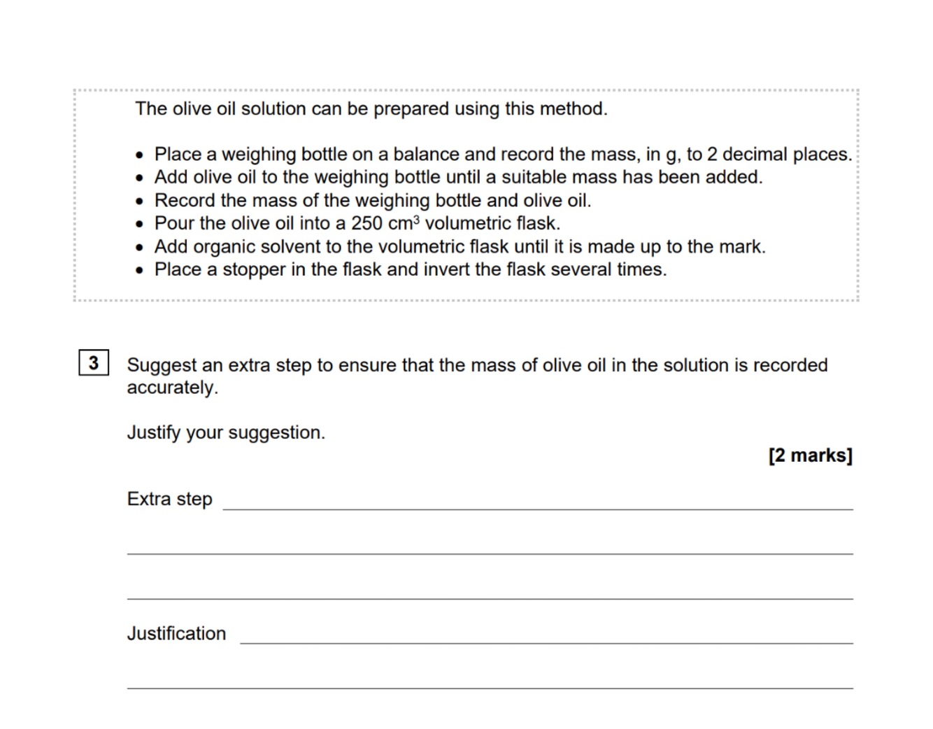 • Justification: Not all of the oil is transferred / so that the mass of oil left in the bottle is accounted for