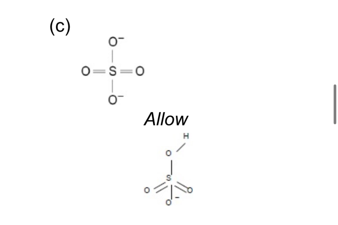 • Draw the displayed formula for the anion formed when sulfur trioxide reacts with water