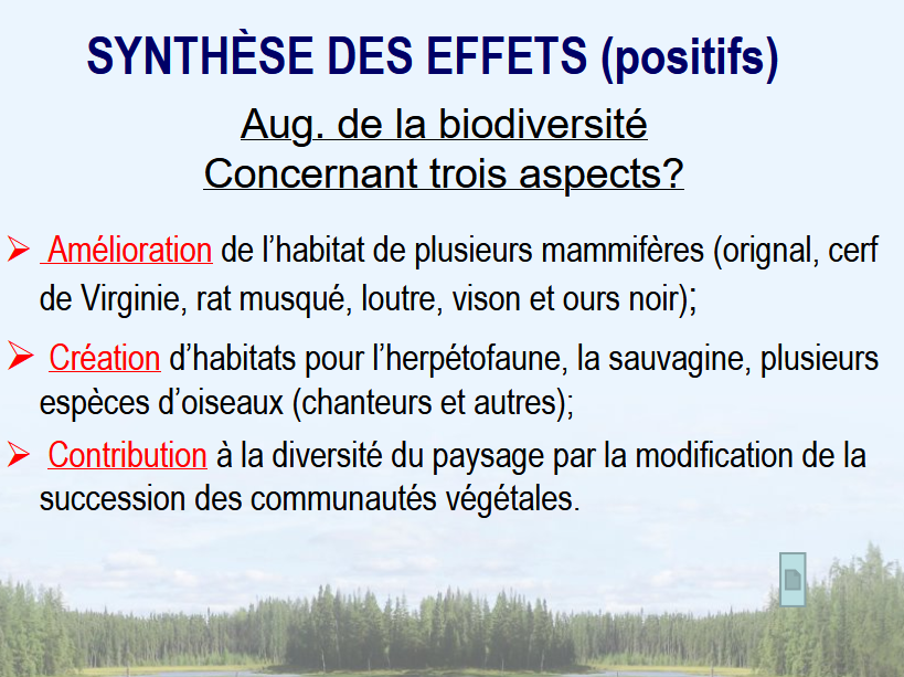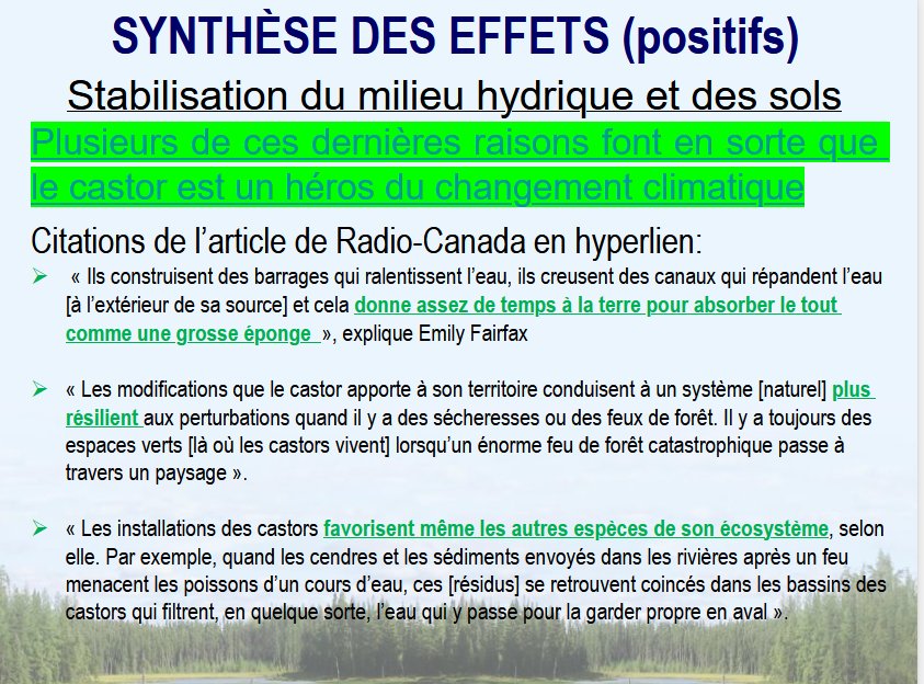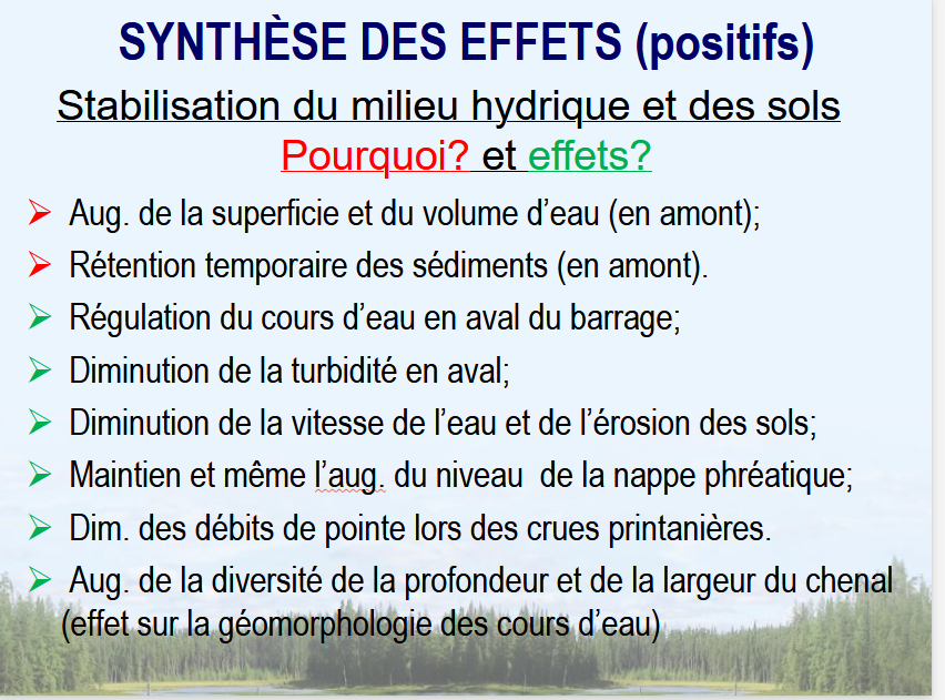 effets synthese positifs du castor stabilisation milieu hydrique pourquoi et effet