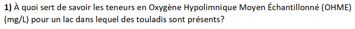 3) a) Afin de bien interpréter les informations de la figure 8., donnez les raisons pour lesquelles l’habitat du touladi est considéré comme sous-optimal, lorsque les teneurs en OHME sont inférieures à 7 mg/L?