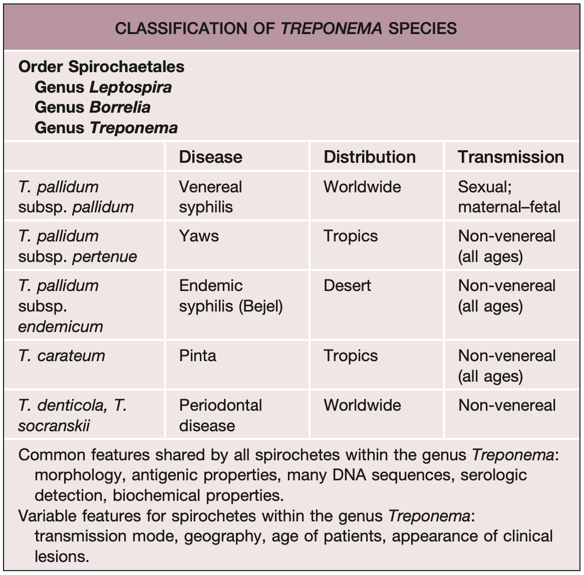 Classification des tréponèmes