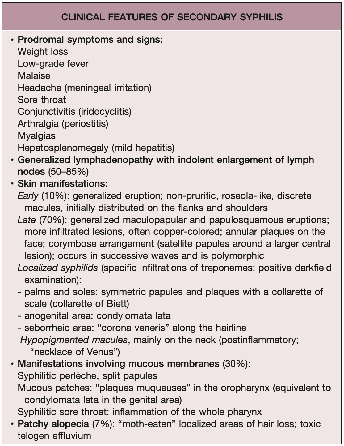 Manifestations mucocutanées syphilis secondaire (10+)