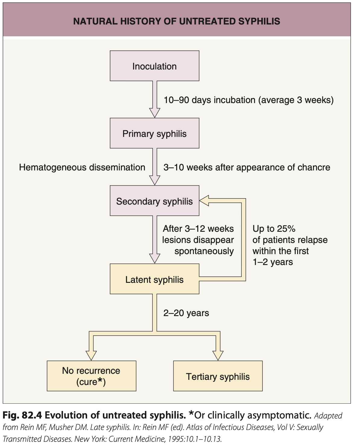 90% des récidives de syphilis secondaire surviennent pendant la première année