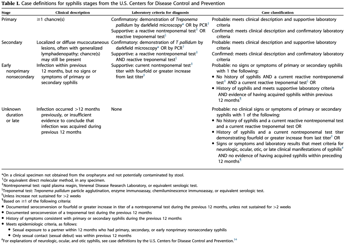 Stades non primaire ni secondaire en syphilis