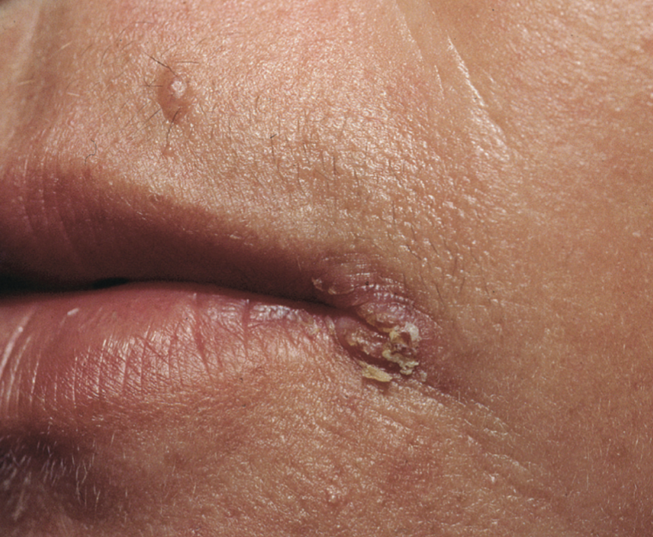 Split papules aux commissures labiales (perlèche syphilitique)