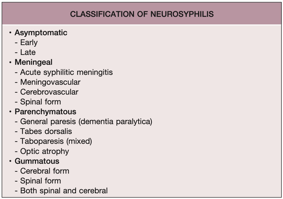 Classification neurosyphilis