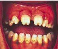 Hutchinson triad: Notched central incisors (below), interstitial keratitis with blidness and deafness from CN XIII injury