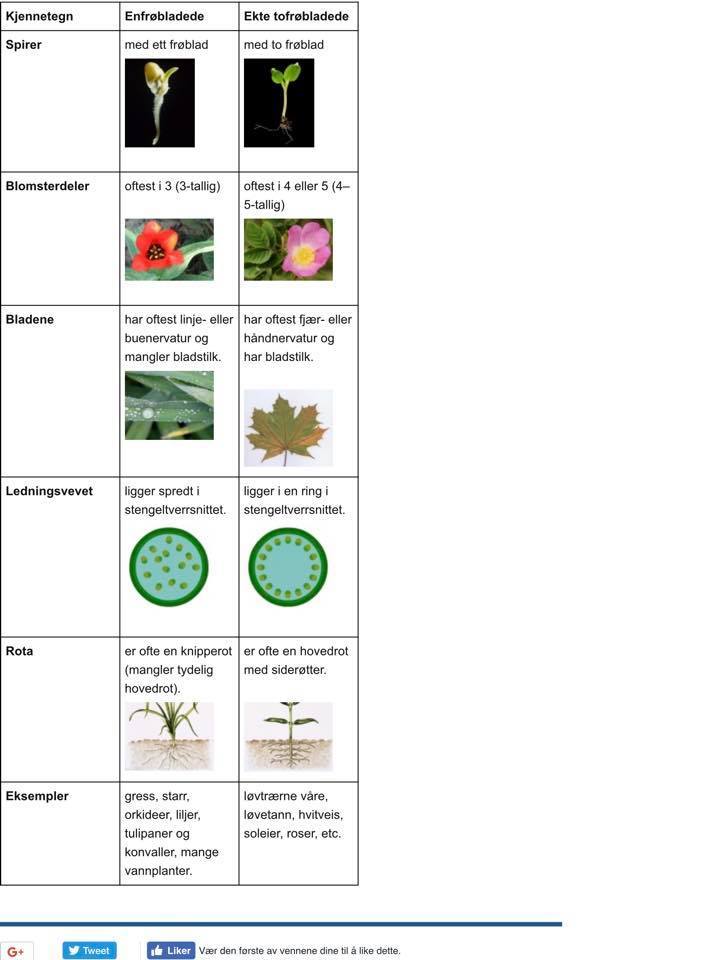 Hva er forskjellen på enfrøbladet og tofrøbladet?