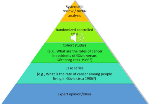 I vilken ordning går evidenstrappan vid behandling och exponering?