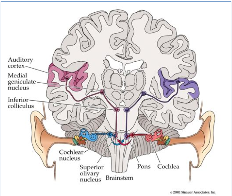 Dès le noyau cochléaire.