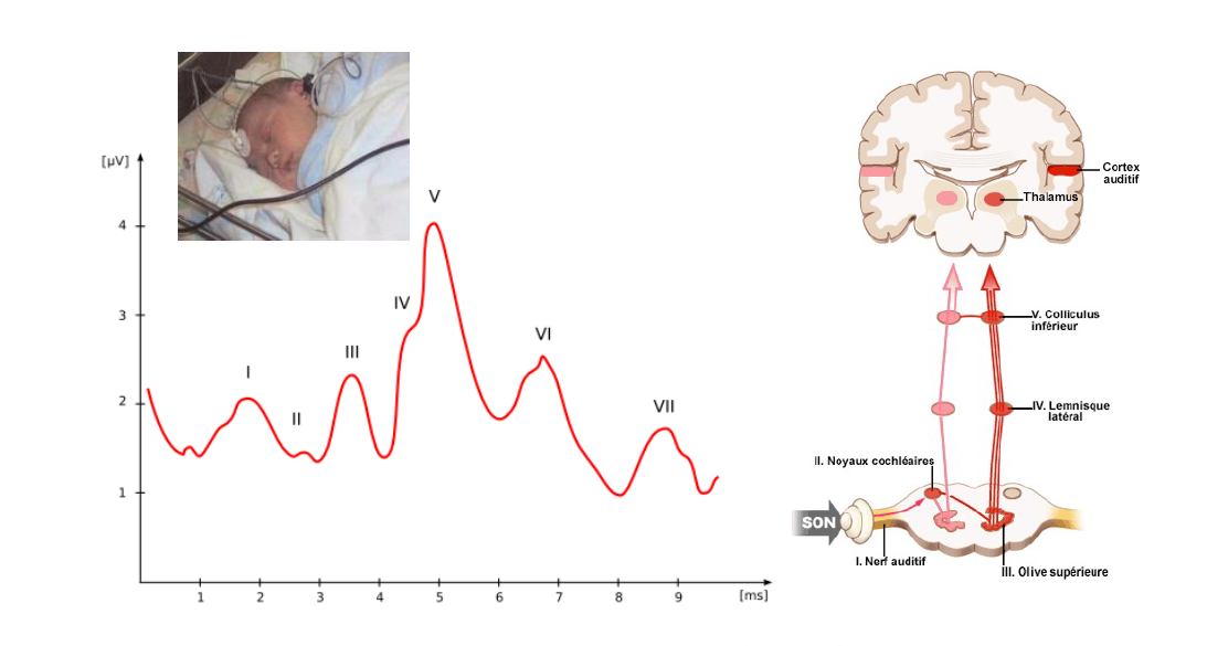 Ce sont les potentiels évoqués lorsque le signal sonore passe par le tronc cérébral: il y a des «rebonds» lorsqu’il passe dans certaines régions.