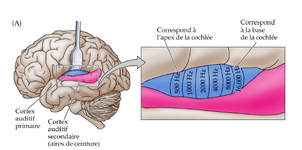 Le fait qu’on puisse voir quelle partie du cortex auditif primaire correspond à quelle partie du système auditif nous dit que…
