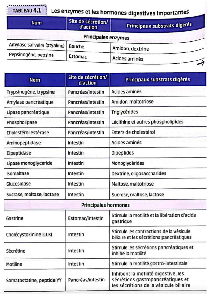 Hormone & circuits nerveux régularisent la progression des aliments & sécrétion de substances requises pour la digestion