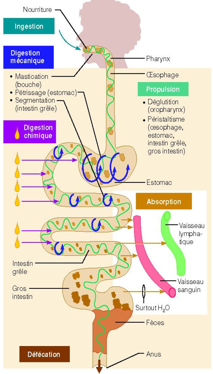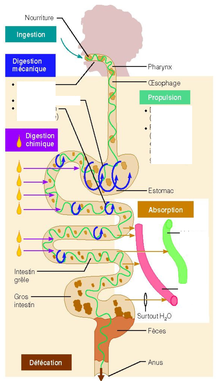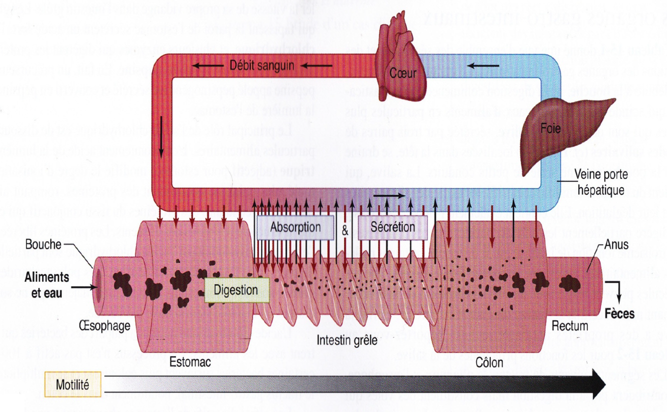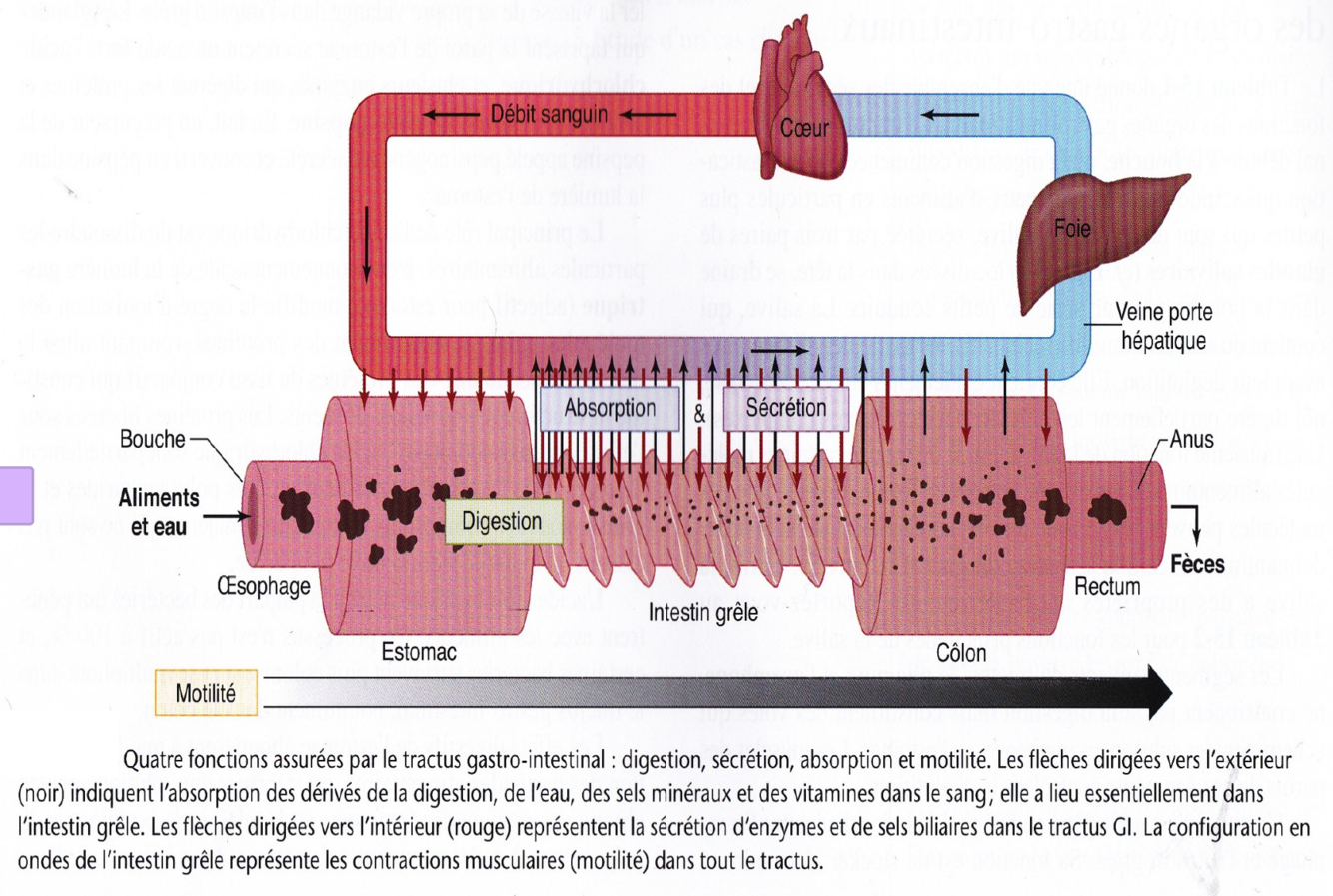 Quels sont les 4 fontions du tractus gastro-intestinal