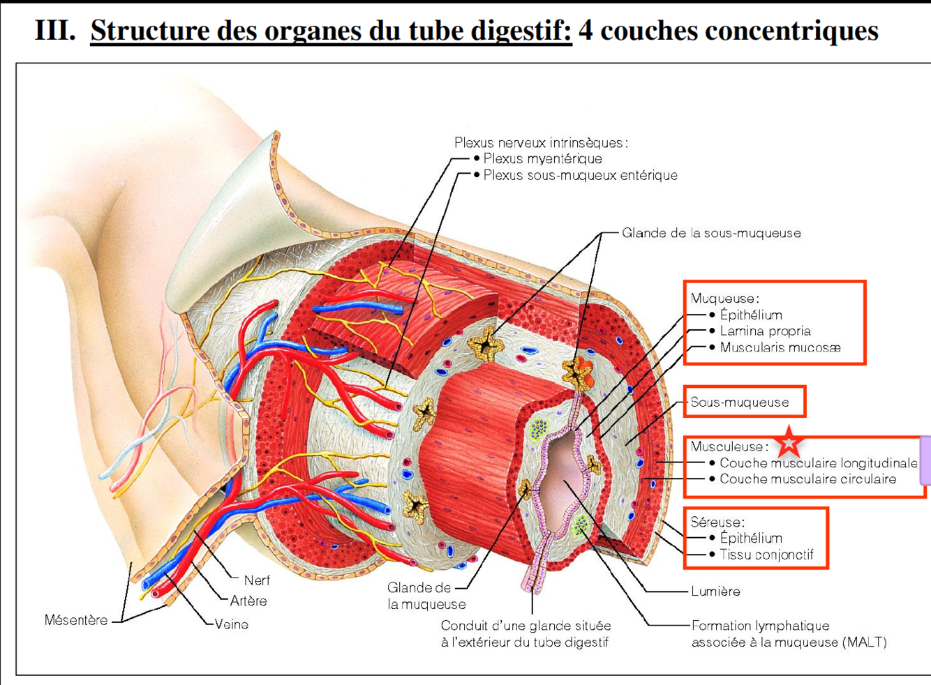 musculeuse a en principe 2 couches musculaire sauf dans certains organes ou il y en a 3 (estomac)