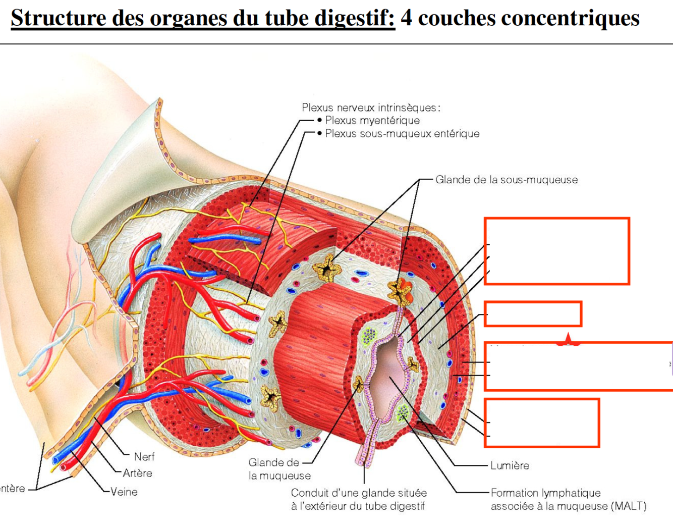 nommer de l’extérieur vers l’intérieur les 4 couche concentrique de la structure d’un tube digestif