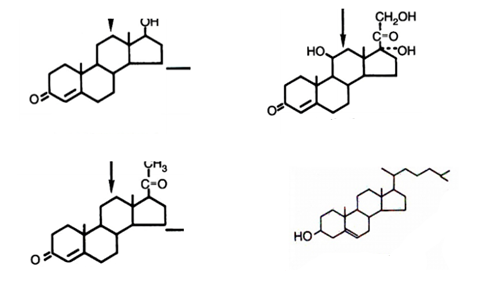 Associez le nom des stéroïdes avec leur structure.