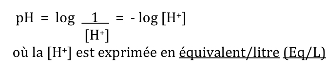 Équation suivante définit la relation entre le pH et la concentration de H+
