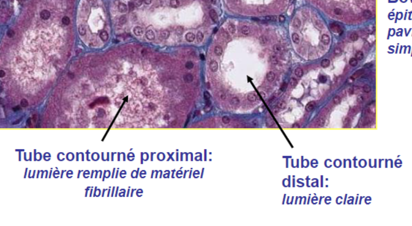 Tubulaire ou urinaire: liquide sort vers le tubule