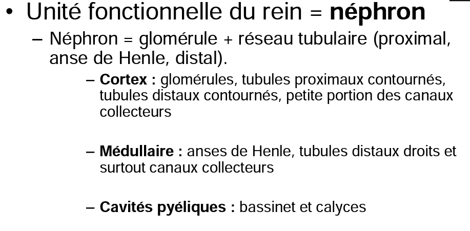Unité fonctionnelle du rein? Où se trouve ses diverses structures?