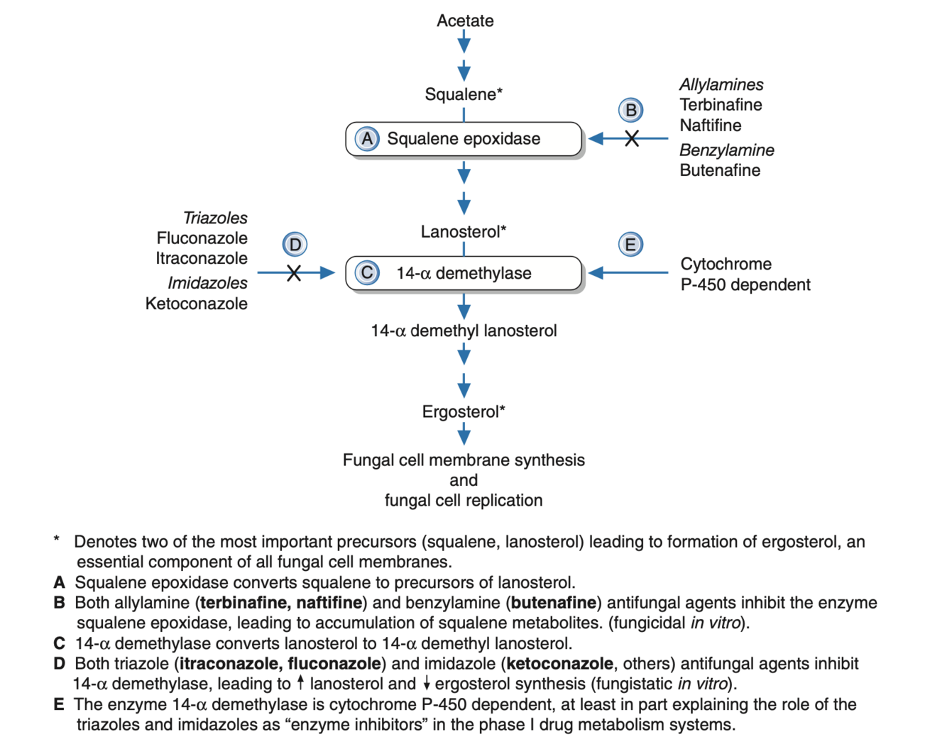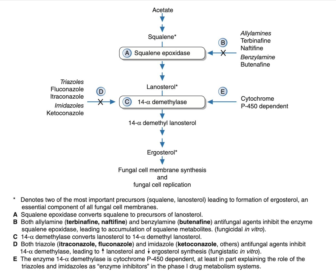 –> accumulation of squalene and a subsequent deficiency of ergosterol.
