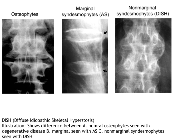 what are the radiographic findings of DISH