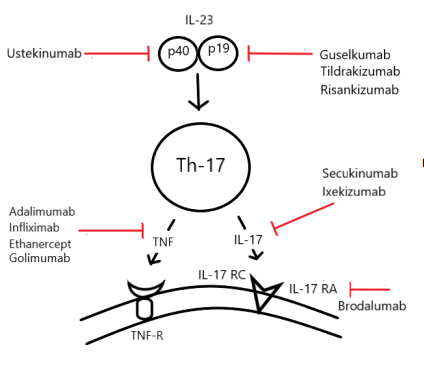 Brodalumab (Siliq) - inhibits IL17 receptor
