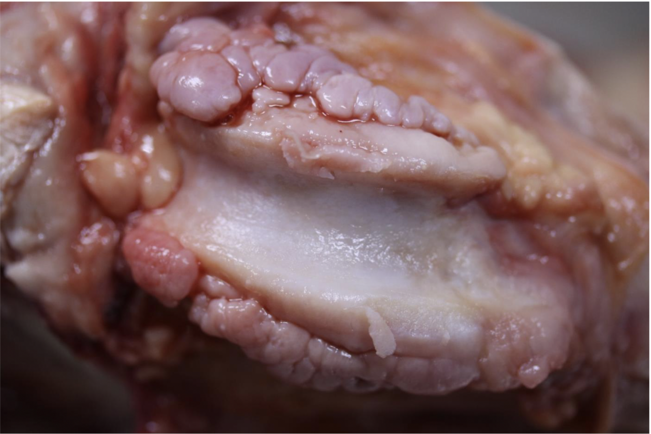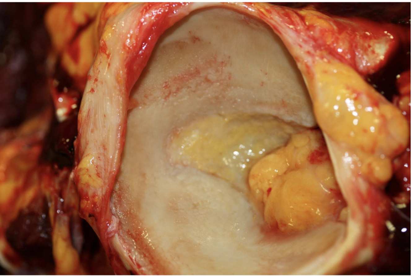 Top of joint capsule that is purpleish = osteophyte formation