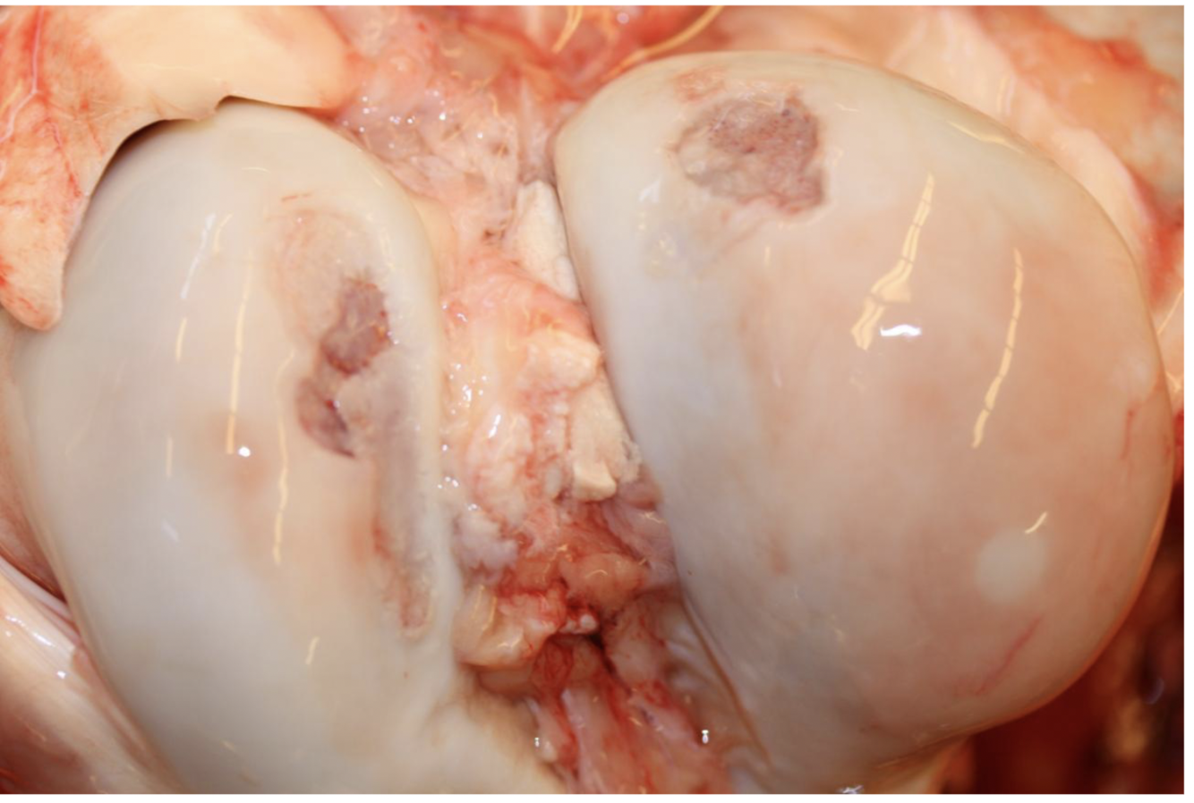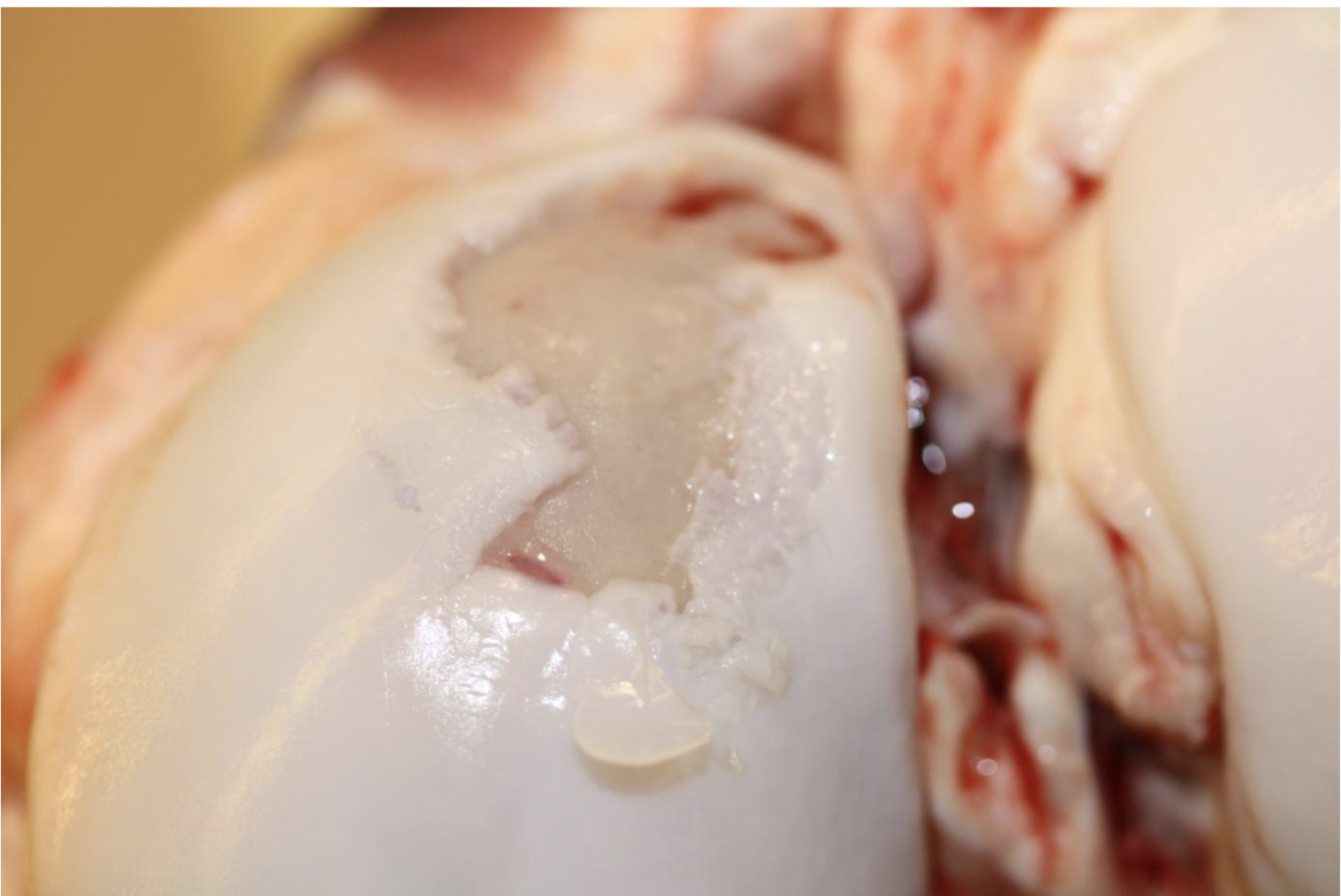 Fibrillation and ulceration of articular cartilage - femoral condyles