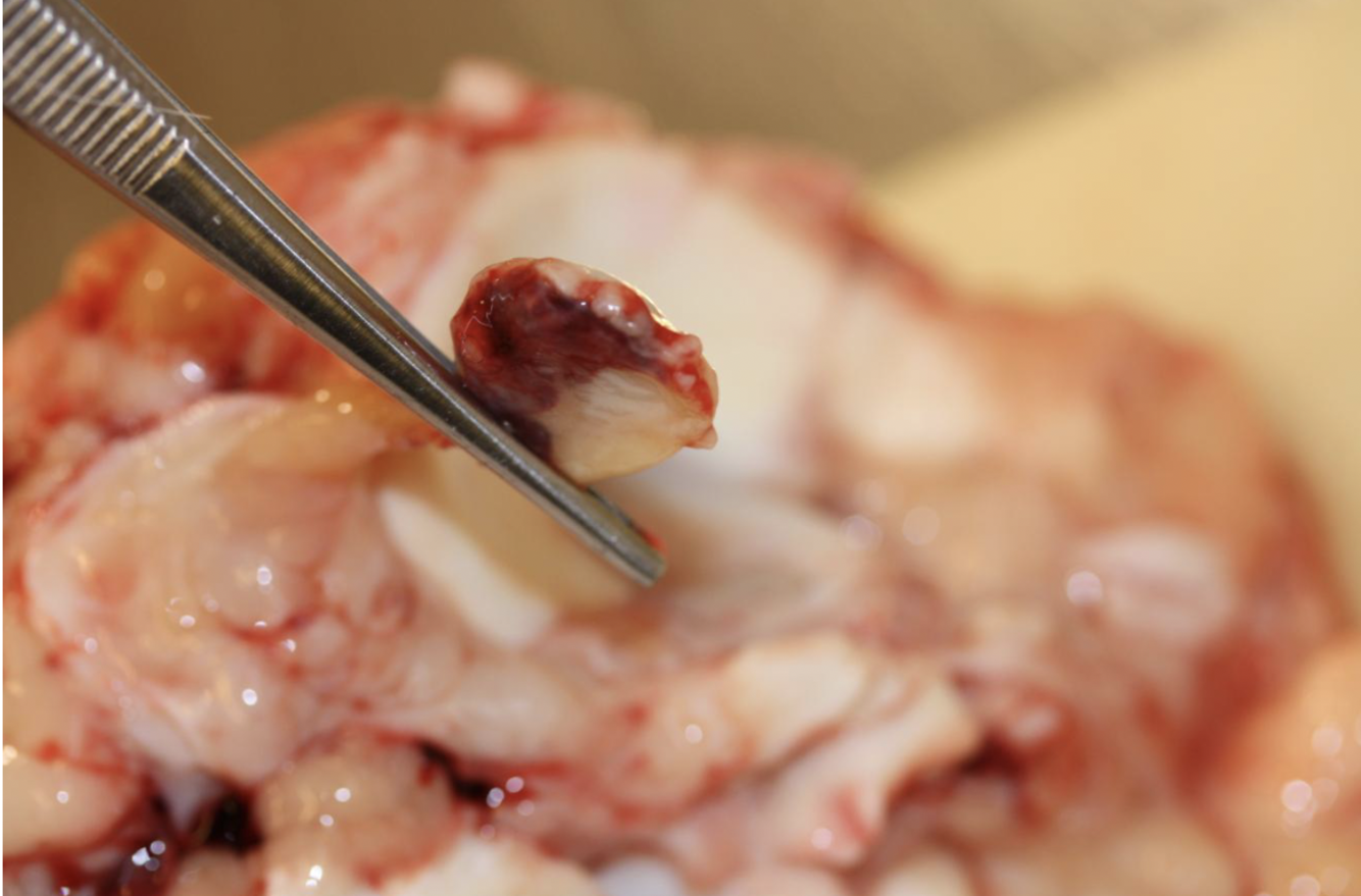 make a longitudinal section, and we look at bone in there, even thinness in articular cartilage that is also characteristic of OCD