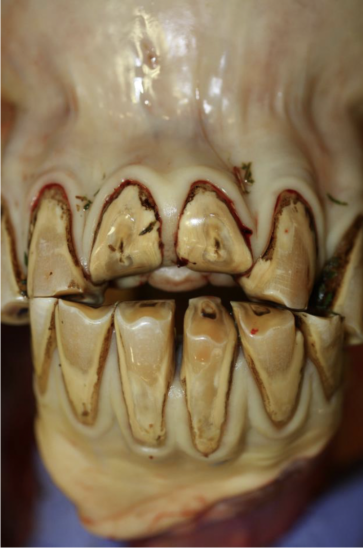 Severe dental attrition (wear and tear).