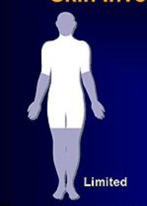 -skin involvement on extremities above and below elbows (plus face and trunk)