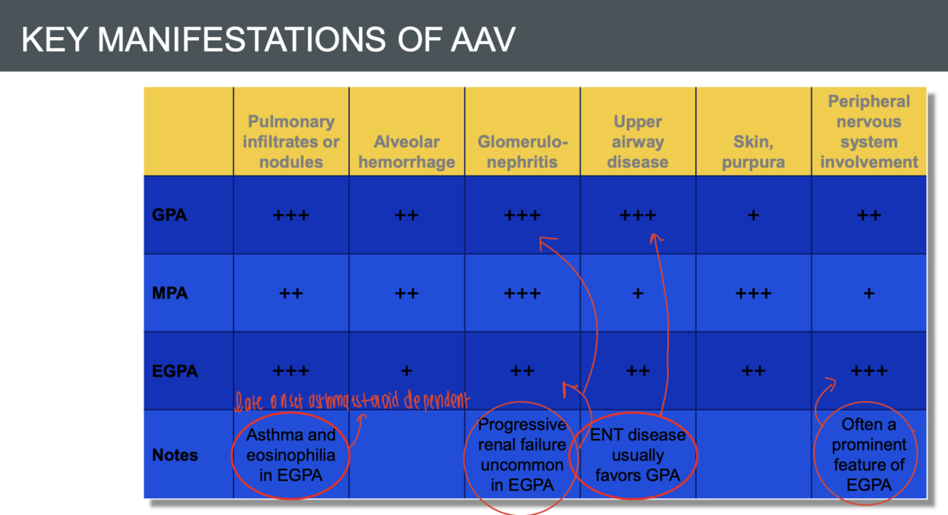 AAV should be suspected in patients presenting with multisystemic symptoms not caused by infections or alignancy such as: