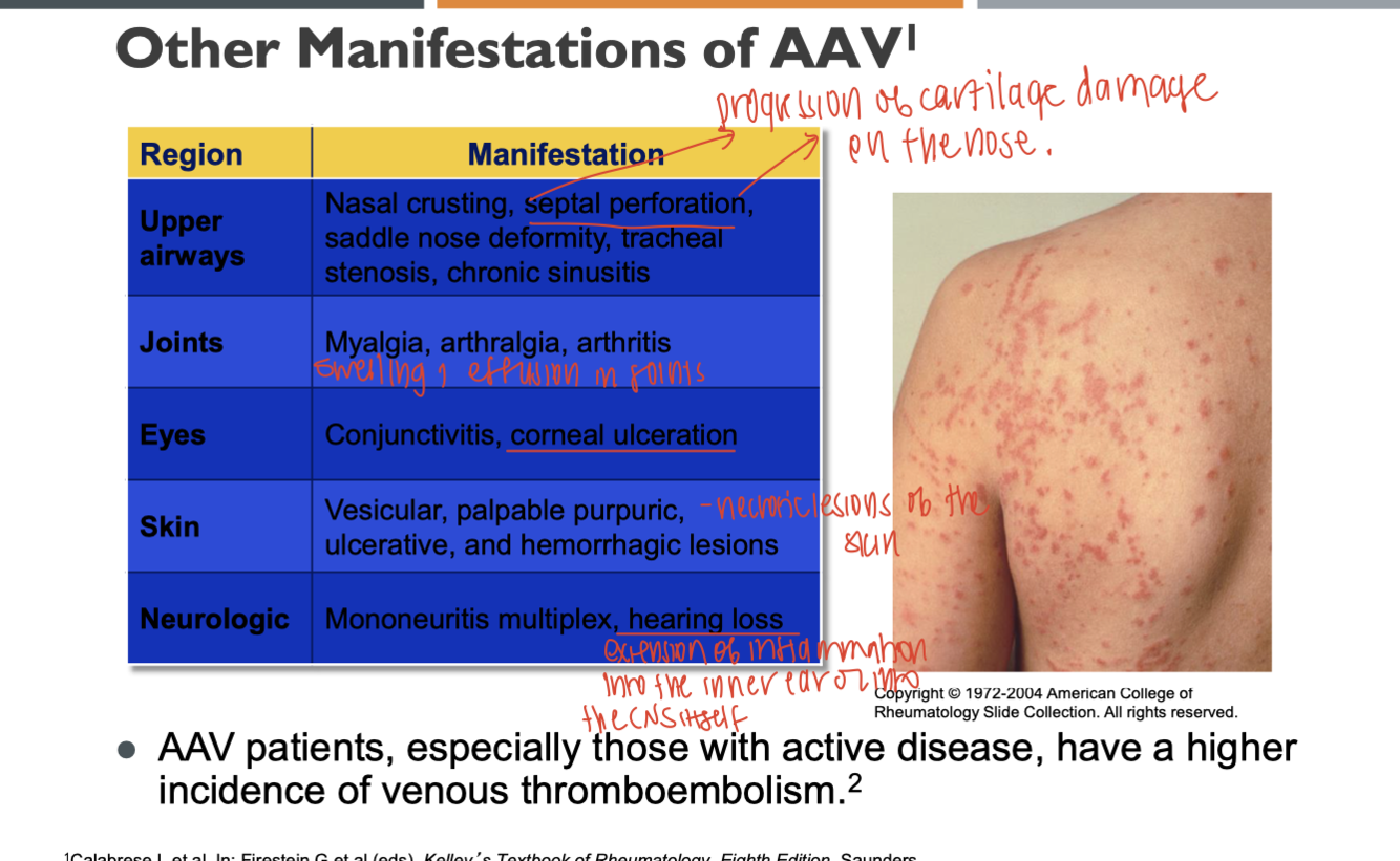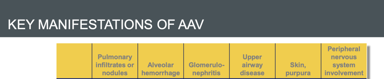 manifestations of AAV in upper airways, joints, eyes ekin and nuerological symptoms
