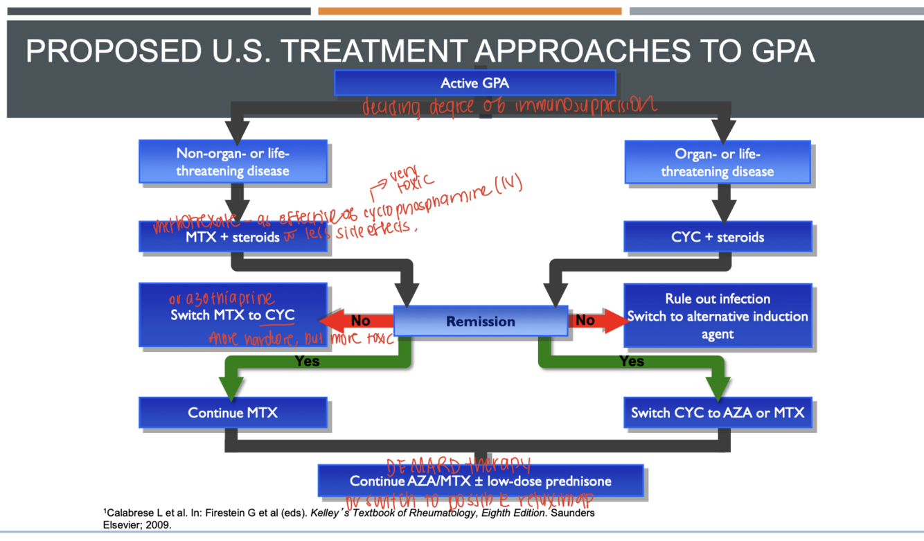 corticosteroids, often in combination with methotrexate or cyclophosphamine. (in severe cases, methylprednisone IV)