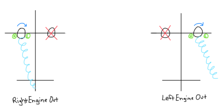 If the right engine fails, this left roll tendency will help us maintain control and resist the roll towards the right, inoperative engine, caused by asymmetric thrust. If the left engine fails, the left roll tendency by torque will add to the left turning force caused by asymmetric thrust into the inoperative engine. This makes it much more difficult to maintain directional control, making the left engine the critical engine.