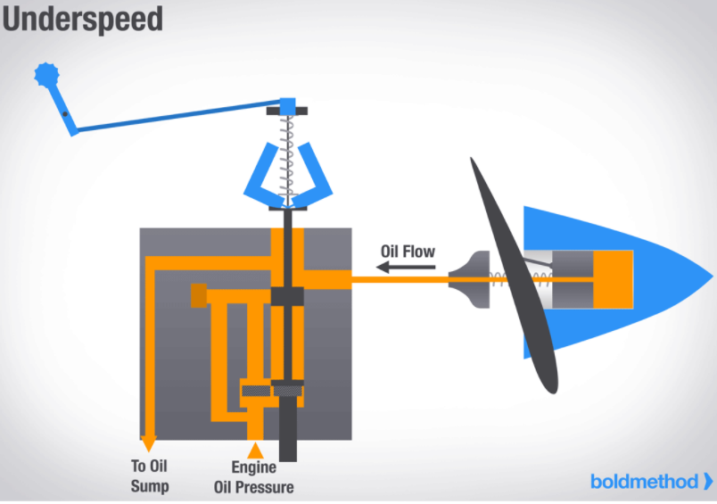 when climbing, if you don’t adjust your engine controls, and you pitch the airplane up, your engine has to work harder and it will start to slow down. This situation is called underspeed.