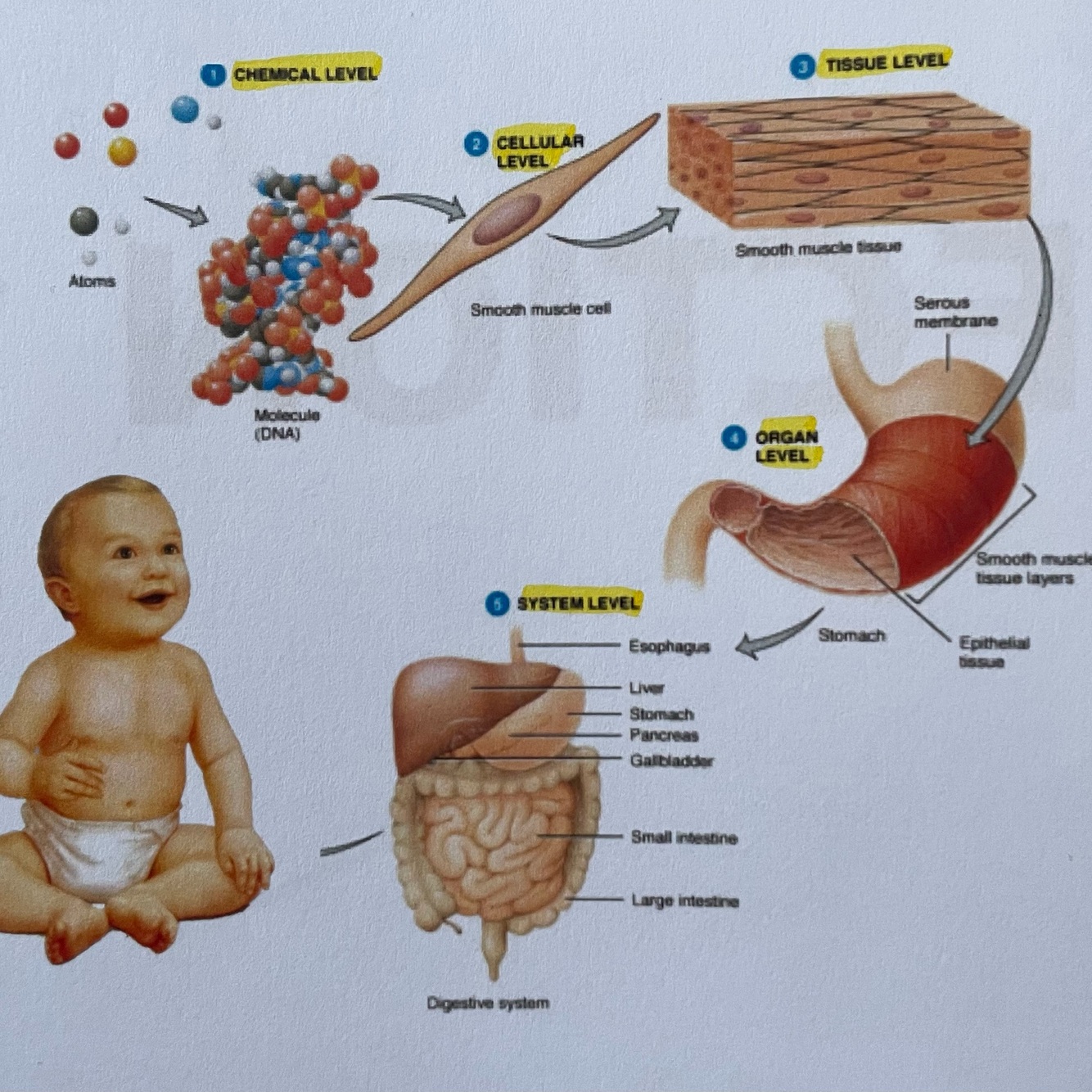 Levels of structural organisation in the human body
