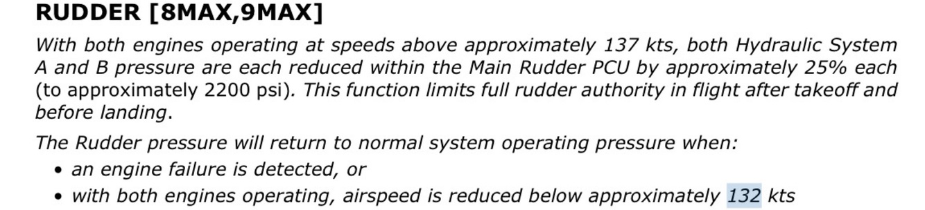 In the MAX, the rudder pressure will return to normal system operating pressure when: