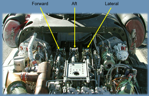 From fore to aft, name the major mechanical systems above the cabin of the aircraft