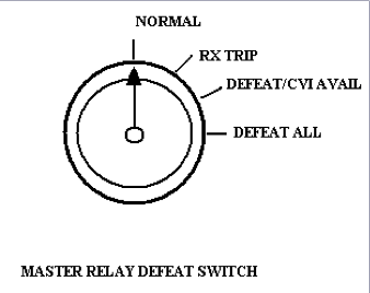 What Rx trips are defeated when the master relay defeat switch is in the “defeat/cvi available” or the “defeat all” positions?